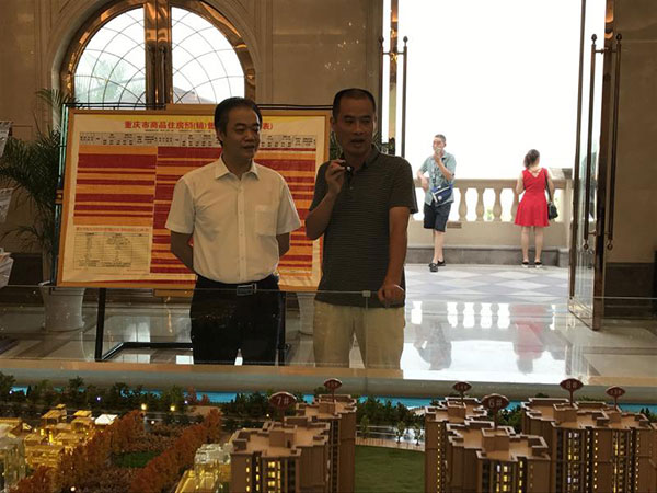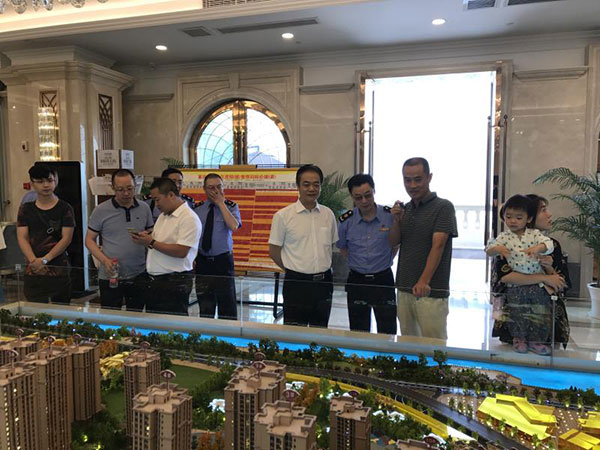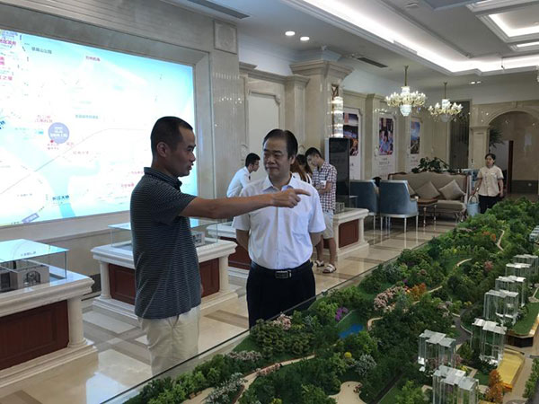 2017年6月23日上午,检查工作组:区国土局房管中心张家荣主任、张文彦副主任,工商局傅局长、广告科李红星科长,合同科刘辉科长,发改委张小春所长及区房管中心程小芳科长等一行莅临南滨上院检查工作;集团公司董事长李总现场汇报项目情况。在南滨上院销售部沙盘前,李总向到访领导们详细介绍了南滨上院的项目建设、规划、发展等情况;同时严格按照房地产市场规范监督机制执行,杜绝违法违规行为。到访领导对南滨上院项目的高标准建设给予了积极评价,公司的宣传销售行为符合各个主管部门的高度肯定。张主任特别强调,要作为一项长期行工作来抓,严格遵守法律法规及相关管理机制;出现新情况,新问题,有针对性地及时处理及汇报。通过大家的团结协作,为推进全区房地产事业健康发展做出更大的贡献。