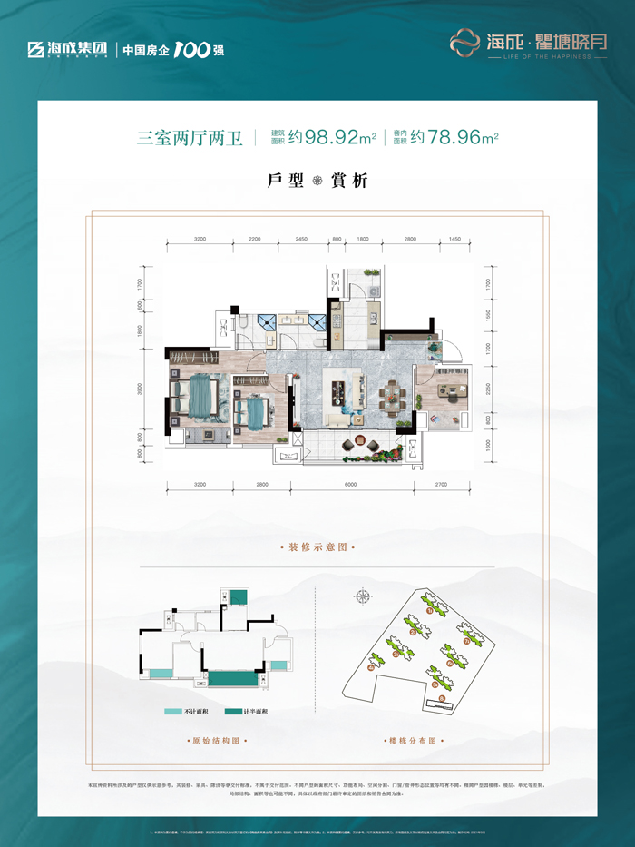 主力户型:88㎡三室两厅竖厅洋楼/98㎡三室两厅横厅洋楼