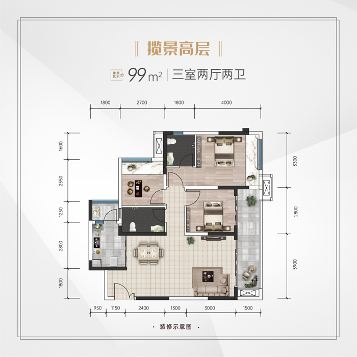 主力户型:高层99m²、洋房99m²、115m²
