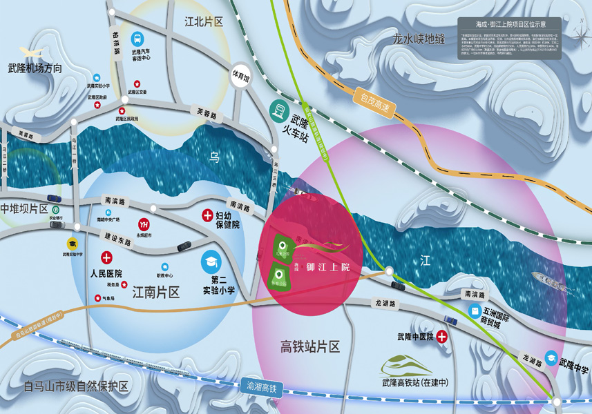 海成·御江上院,傲居高铁新城门户,便捷路网接驳全城,双公园拥揽四季优雅,约2.6公里黄金亲水江景,极目瞰江视野,臻藏约2.6公里黄金江景。项目规划约1万方滨江风情商业,自建幼儿园,毗邻实验二小、武隆中学,约5万方五维立体园林景观,礼仪归家体系、活力轴线体系、森养运动体系、生态花园体系、地域文化体系,营造“会呼吸”的全维度人居生活场景,以60万方全能精奢住区,领秀武隆。
